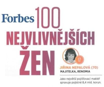 Jiřina Nepalová, Founder and Director RENOMIA, features, for the sixth time, in the company of the most influential women in the Czech Republic, a ranking published by the Forbes magazine. This year for the first time, the Czech Power Women ranking features 100 most influential Czech women. Jiřina Nepalová ranked 17th in this year's ranking and has featured high up on the chart every year since 2012.